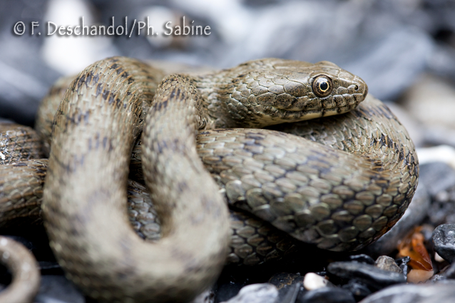 : Couleuvre tesselée (Natrix tessellata), Lac Léman, Suisse.