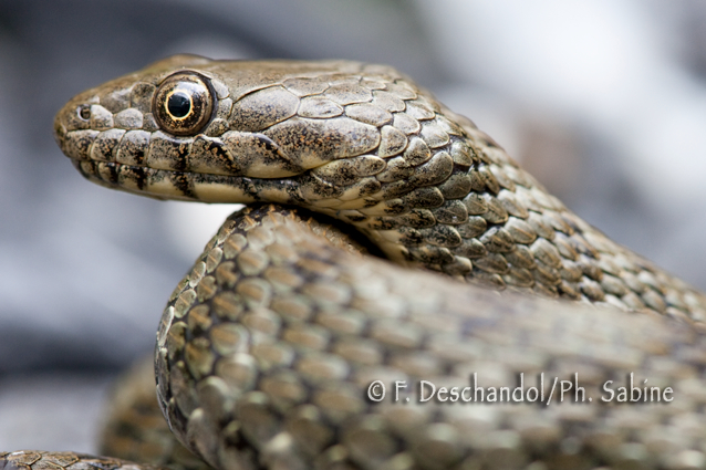 : Couleuvre tesselée (Natrix tessellata), Lac Léman, Suisse.