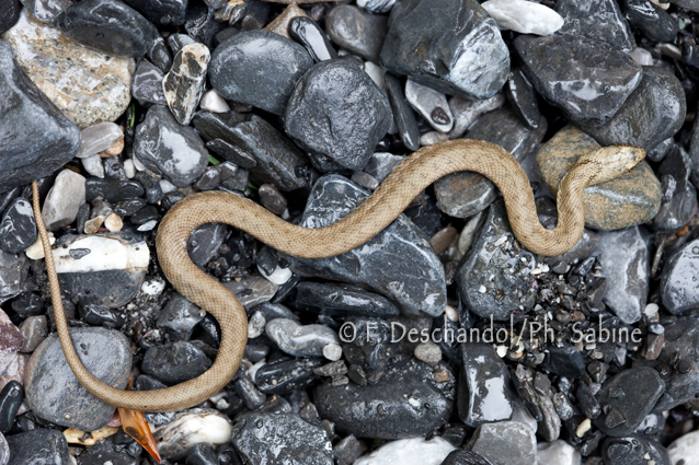 : Couleuvre tesselée (Natrix tessellata), juvénile, Lac Léman, Suisse.