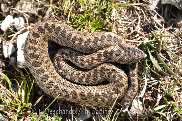 : Vipère d'Orsini (Vipera ursinii ursinii), mue proche, Mont Ventoux (84), France.