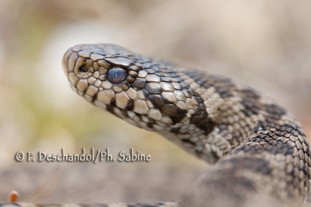 : Vipère d'Orsini (Vipera ursinii ursinii), mue proche, Mont Ventoux (84), France.