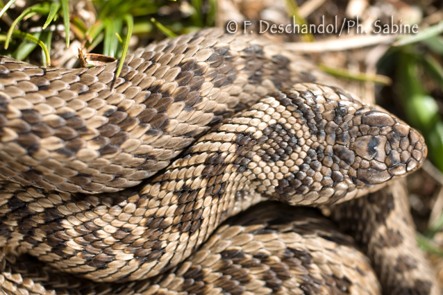 : Vipère d'Orsini (Vipera ursinii ursinii), mue proche, Mont Ventoux (84), France.