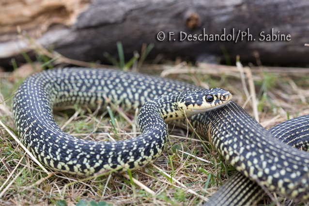 : Couleuvre verte et jaune (Hierophis viridiflavus viridiflavus), mâle, Mont Ventoux (84), France.