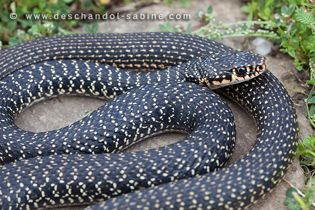 : Couleuvre verte et jaune (Hierophis viridiflavus viridiflavus), Nuoro, Sardaigne.
