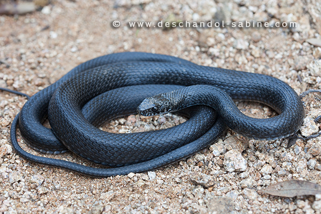 : Couleuvre verte et jaune (Hierophis viridiflavus viridiflavus), forme mélanique, Sette Fratelli, Sardaigne.