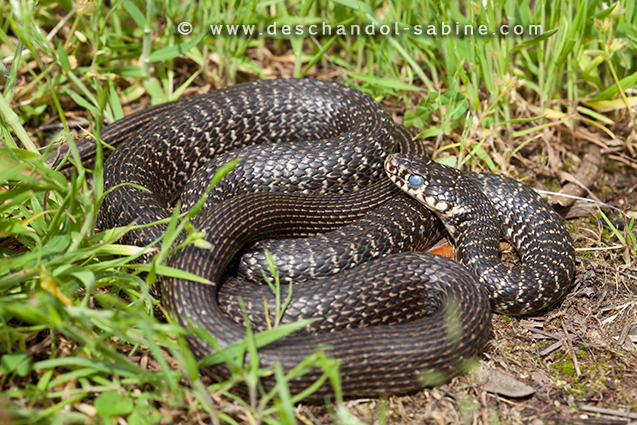 : Couleuvre verte et jaune (Hierophis viridiflavus viridiflavus), Portigliolo, Corse.