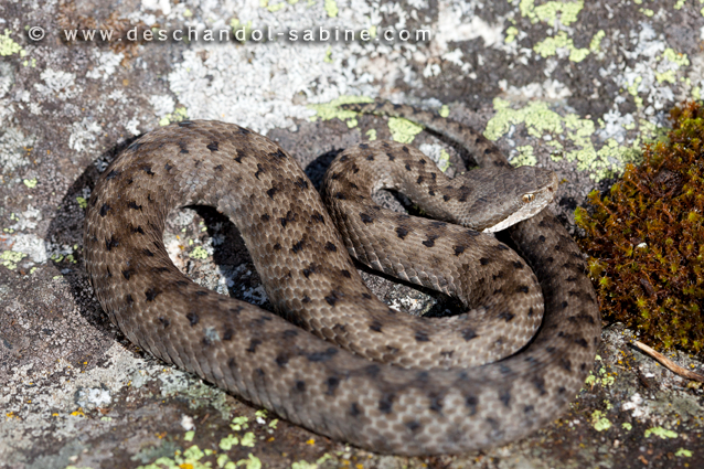 : Vipère aspic (Vipera aspis zinnikeri), subadulte, Puymorens (66), France.