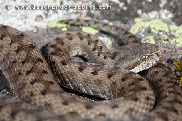 : Vipère aspic (Vipera aspis zinnikeri), subadulte, Puymorens (66), France.
