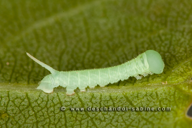 : Sphinx du Tremble (Laothoe amurensis), chenille 1er stade, Omsk, Russie.
