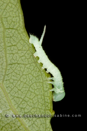 : Sphinx du Tremble (Laothoe amurensis), chenille 1er stade, Omsk, Russie.