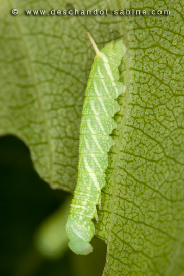 : Sphinx du Tremble (Laothoe amurensis), chenille 1er stade, mue proche, Omsk, Russie.