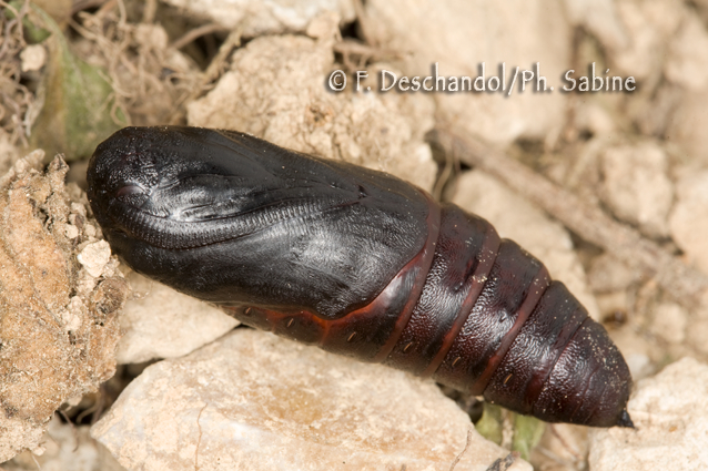 : Sphinx demi-paon (Smerinthus ocellatus atlanticus), chrysalide, Aït-Mhammed, Maroc.