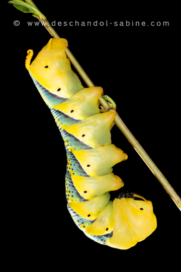 : Sphinx tête de mort (Acherontia atropos), chenille 5ème stade, forme jaune, Berne, Suisse.