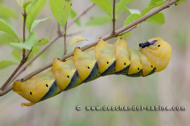 : Sphinx tête de mort (Acherontia atropos), chenille 5ème stade, forme jaune, Berne, Suisse.