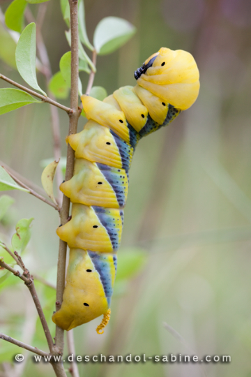 : Sphinx tête de mort (Acherontia atropos), chenille 5ème stade, forme jaune, Berne, Suisse.