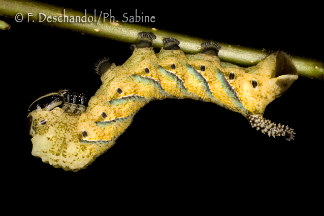 : Sphinx tête de mort (Acherontia atropos), chenille 5ème stade, passage en forme brune juste après la mue, origine inconnue.