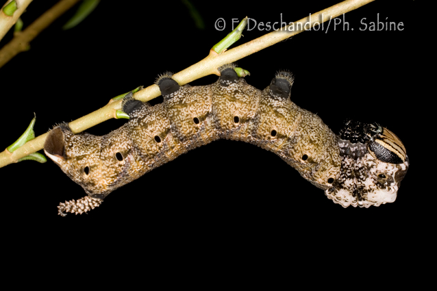 : Sphinx tête de mort (Acherontia atropos), chenille 5ème stade, forme brune, origine inconnue.