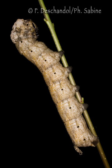 : Sphinx tête de mort (Acherontia atropos), chenille 5ème stade, forme brune, origine inconnue.