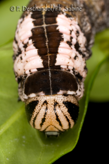 : Sphinx tête de mort (Acherontia atropos), chenille 5ème stade, forme brune, origine inconnue.