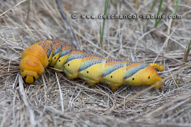 : Sphinx tête de mort (Acherontia atropos), chenille 5ème stade avant nymphose, Berne, Suisse.