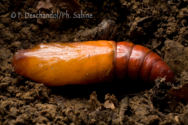 : Sphinx tête de mort (Acherontia atropos), chrysalide récente mâle, origine inconnue.