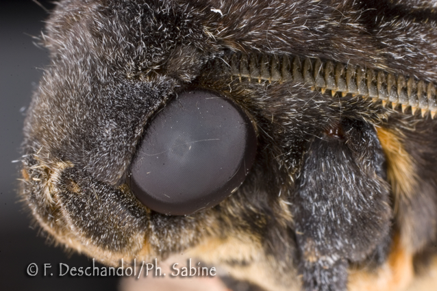 : Sphinx tête de mort (Acherontia atropos), mâle, détail de la tête, origine inconnue.