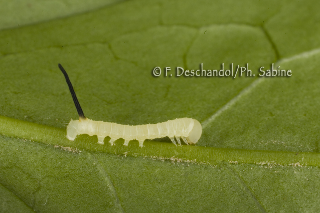 : Sphinx tête de mort (Acherontia atropos), chenille 1er stade, origine inconnue.