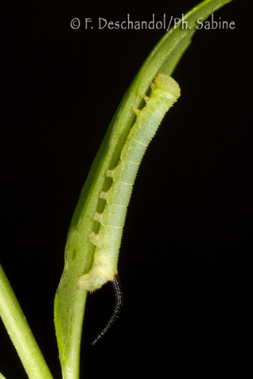 : Sphinx tête de mort (Acherontia atropos), chenille 2ème stade, origine inconnue..