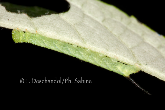 : Sphinx tête de mort (Acherontia atropos), chenille 2ème stade, origine inconnue.