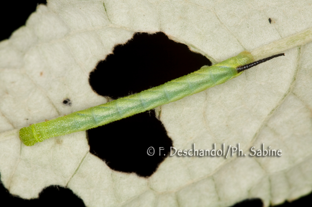 : Sphinx tête de mort (Acherontia atropos), chenille 2ème stade, origine inconnue.