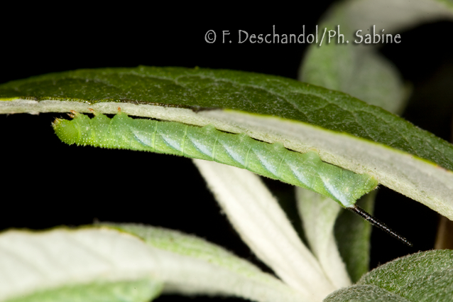 : Sphinx tête de mort (Acherontia atropos), chenille 2ème stade, origine inconnue.