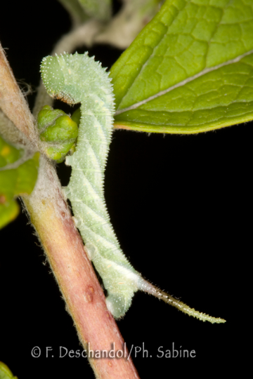 : Sphinx tête de mort (Acherontia atropos), chenille 3ème stade, origine inconnue.