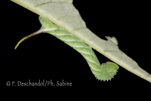 : Sphinx tête de mort (Acherontia atropos), chenille 3ème stade, origine inconnue.