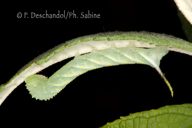 : Sphinx tête de mort (Acherontia atropos), chenille 3ème stade, origine inconnue.