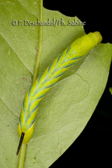 : Sphinx tête de mort (Acherontia atropos), chenille 3ème stade, origine inconnue.