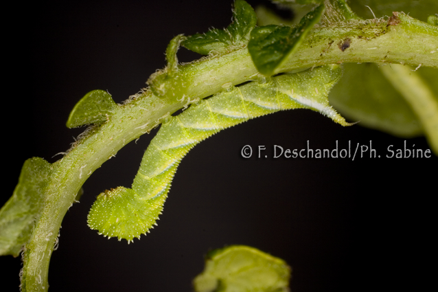 : Sphinx tête de mort (Acherontia atropos), chenille 3ème stade, origine inconnue.