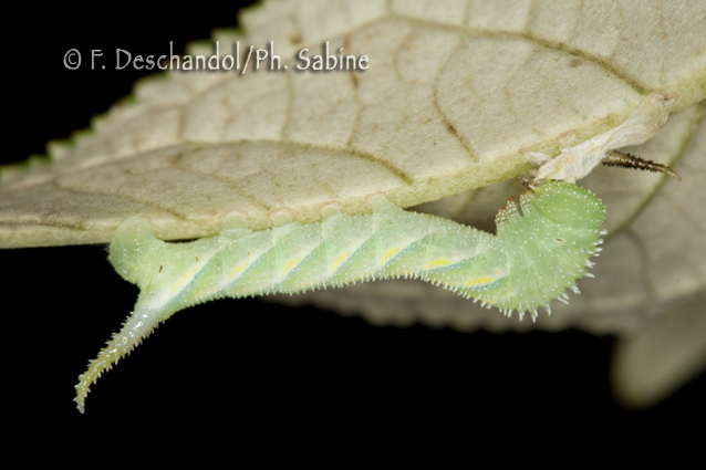: Sphinx tête de mort (Acherontia atropos), chenille 4ème stade, origine inconnue.