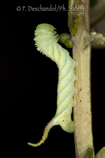 : Sphinx tête de mort (Acherontia atropos), chenille 4ème stade, origine inconnue.