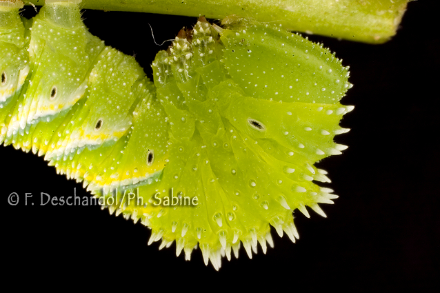 : Sphinx tête de mort (Acherontia atropos), chenille 4ème stade, origine inconnue.