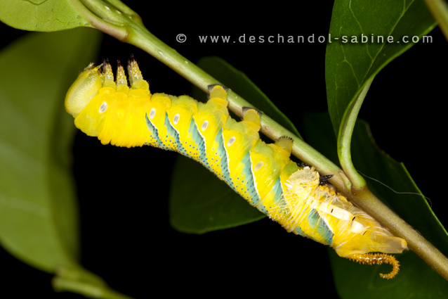 : Sphinx tête de mort (Acherontia atropos), chenille 4ème stade vers 5ème stade, Berne, Suisse.