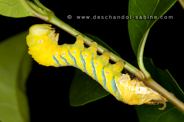 : Sphinx tête de mort (Acherontia atropos), chenille 4ème stade vers 5ème stade, Berne, Suisse.