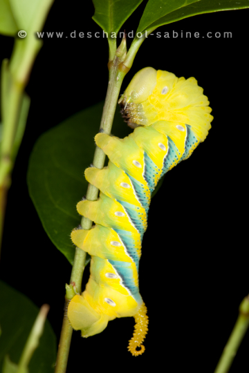 : Sphinx tête de mort (Acherontia atropos), chenille 5ème stade après la mue, Berne, Suisse.