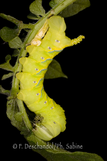 : Sphinx tête de mort (Acherontia atropos), chenille 5ème stade après la mue, origine inconnue.