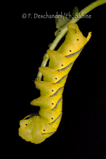 : Sphinx tête de mort (Acherontia atropos), chenille 5ème stade, forme jaune, origine inconnue.