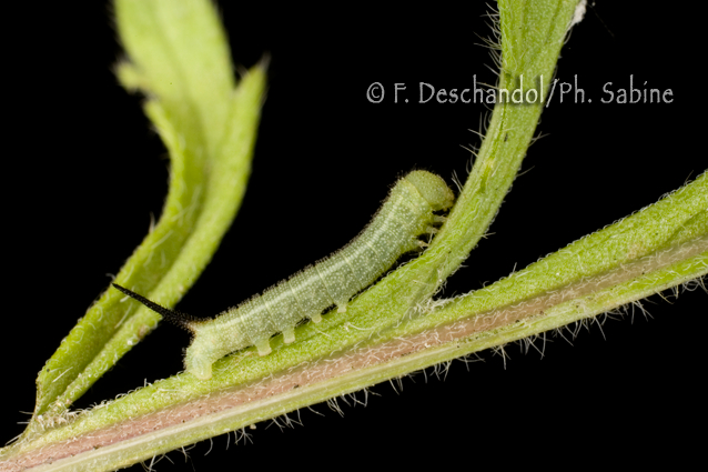 : Macroglosse de Croatie (Hemaris croatica croatica), chenille 2ème stade, Dubrovnik, Croatie.