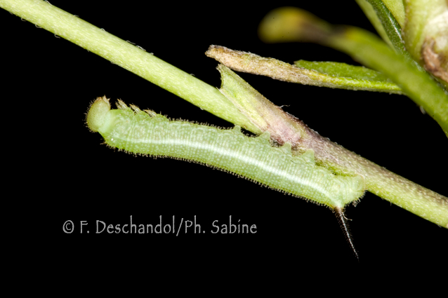 : Macroglosse de Croatie (Hemaris croatica croatica), chenille 2ème stade, mue proche, Dubrovnik, Croatie.