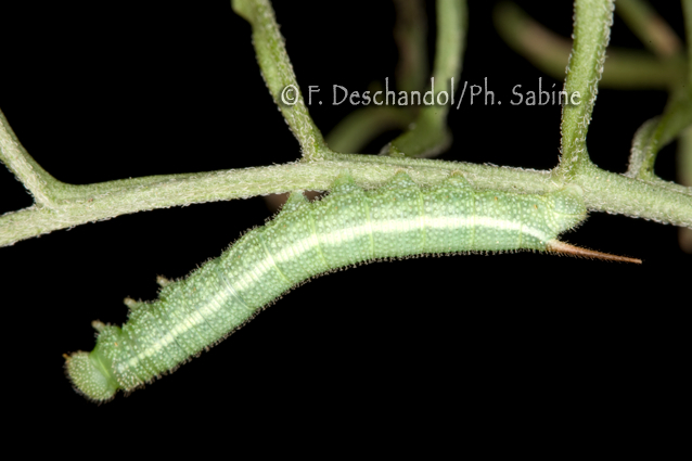 : Macroglosse de Croatie (Hemaris croatica croatica), chenille 3ème stade, Dubrovnik, Croatie.