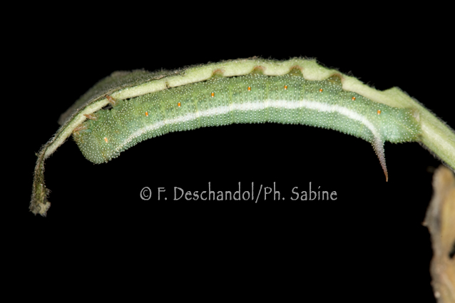 : Macroglosse de Croatie (Hemaris croatica croatica), chenille 4ème stade, Dubrovnik, Croatie.