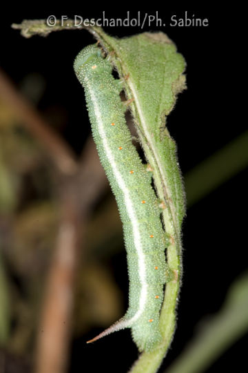 : Macroglosse de Croatie (Hemaris croatica croatica), chenille 4ème stade, Dubrovnik, Croatie.