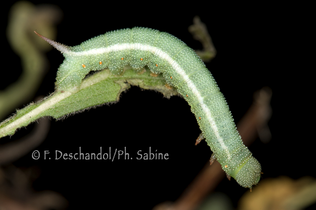 : Macroglosse de Croatie (Hemaris croatica croatica), chenille 4ème stade, Dubrovnik, Croatie.